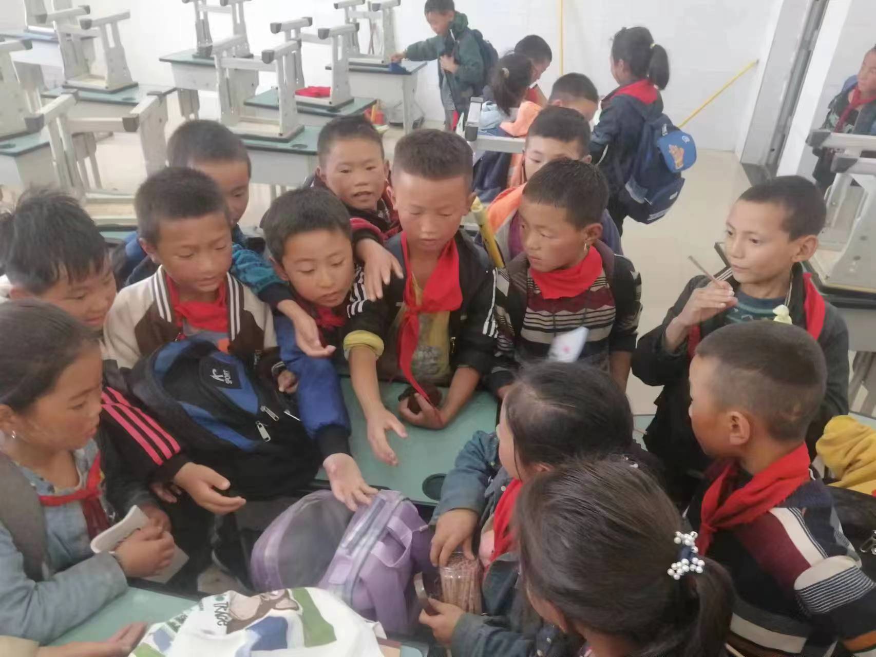 涼山州美姑縣依果覺鄉(xiāng),是支部黨員們此行的另一個重要的目的地。在一所紅瓦白墻的建筑物門口,大家見到了來自洪溪鎮(zhèn)小學(xué)一年級的同學(xué),每個人都被那些明亮純真而充滿好奇的雙眼深深打動了。當小朋友們見到黨員們特意為他們準備的文具、圖書等物資時,小小的歡呼聲此起彼伏地響了起來。一個叫紅英的小女孩在接過屬于自己的小書包時,靦腆地用還不太標準的普通話說:“謝謝叔叔阿姨!”青年黨員馮佳對此印象深刻:“能感覺到他們雖然年齡不大,但對未來都充滿了希望和憧憬,我也希望我們微不足道的一點幫助能夠成為他們求學(xué)‘長征’路上的一份助力!”
