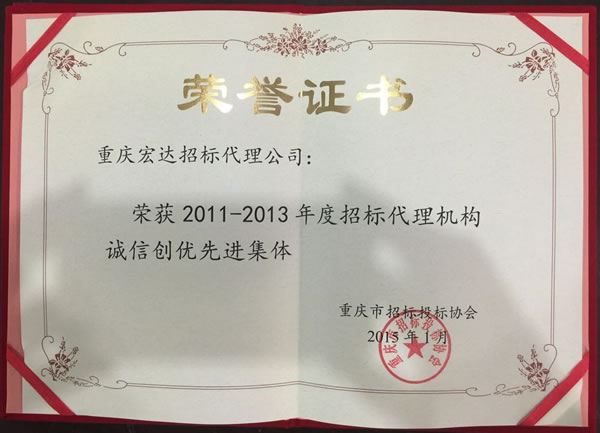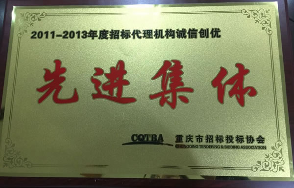 我公司榮獲重慶市招標投標協(xié)會2011-2013年度誠信創(chuàng)優(yōu)先進集體及2014年度先進招標代理機構(gòu)先進集體稱號