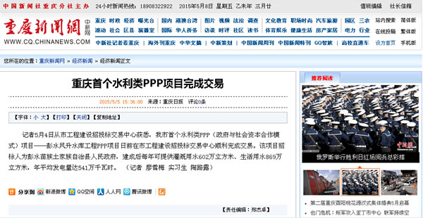 重慶日報在重慶新聞網(wǎng)上發(fā)布我公司代理的彭水縣鳳升水庫工程PPP項目